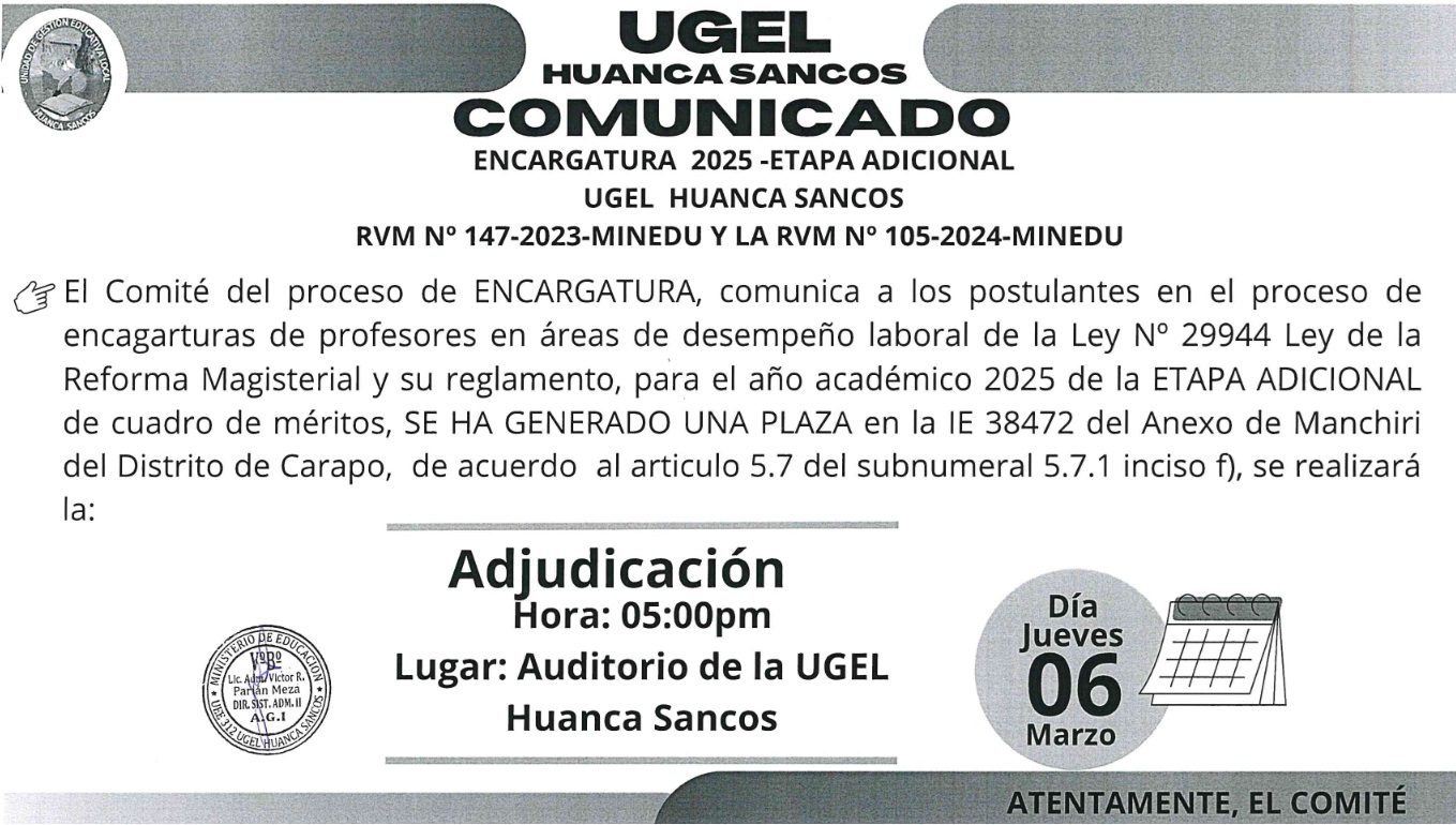 COMUNICADO PROCESO DE ENCARGATURA 2025